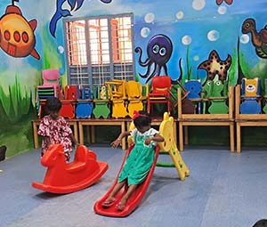 Our safe and colorful indoor play area encourages active play and social interaction. Play equipment is designed to improve balance, coordination, and motor skills while allowing children to explore, share, and enjoy free play in a secure environment.
